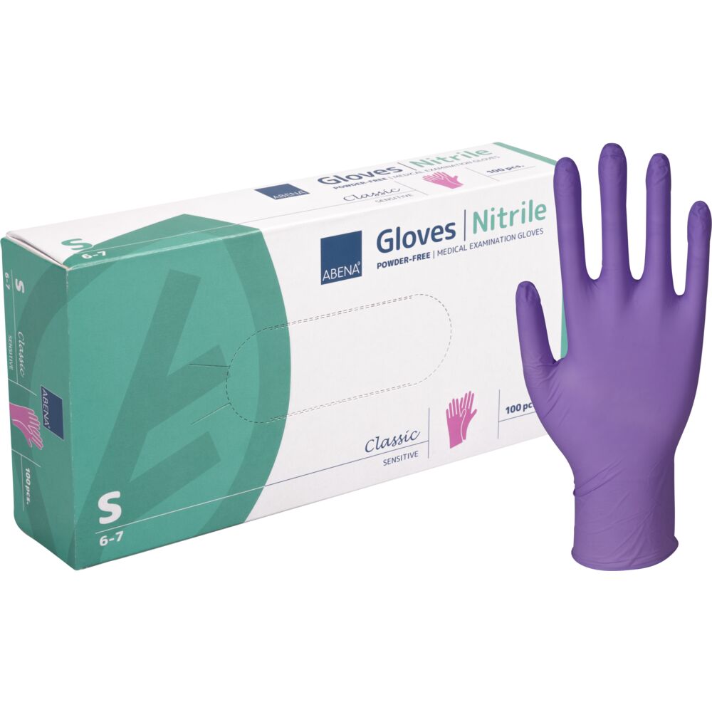 Abena нитриловые перчатки S размер,100 шт., фиолетовые, без пудры