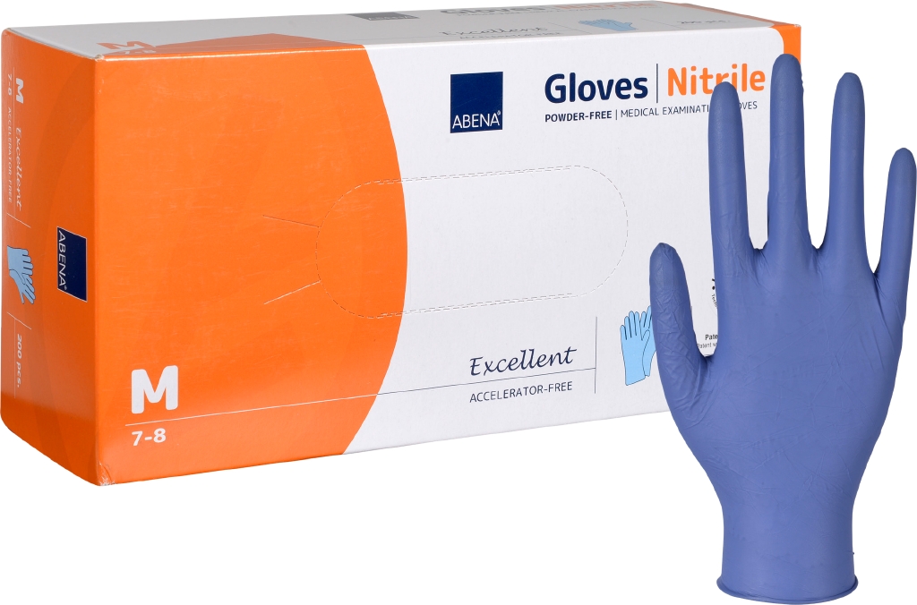 Abena nitrila cimdi M izmērs, 200 gab. Acc-Free, zili, bez pūdera