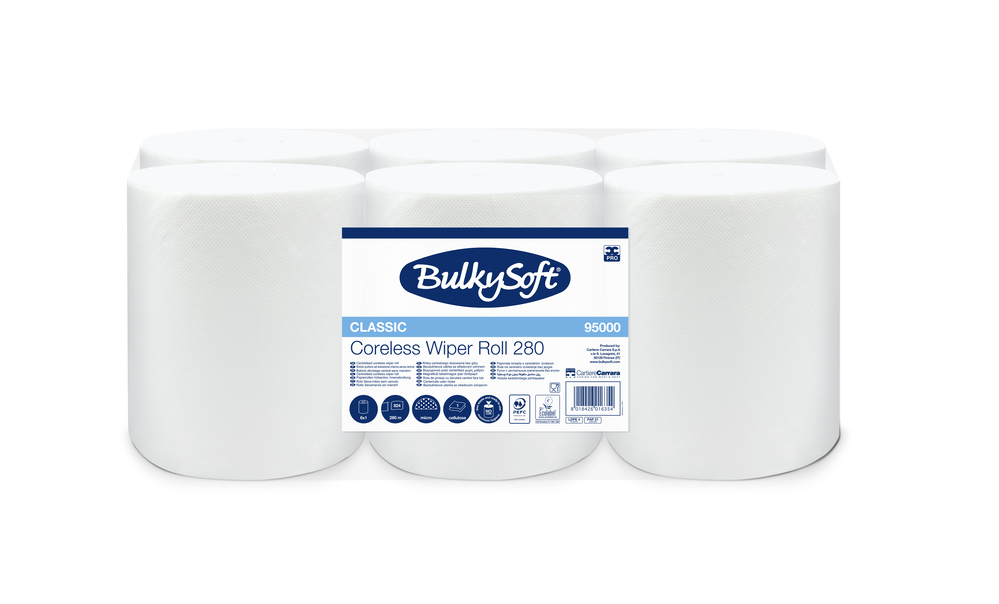 Bulkysoft Comfort papīra rullis slaucīšanai ar centrālo padevi 280m,1 kārta, bez serdeņa, perf.