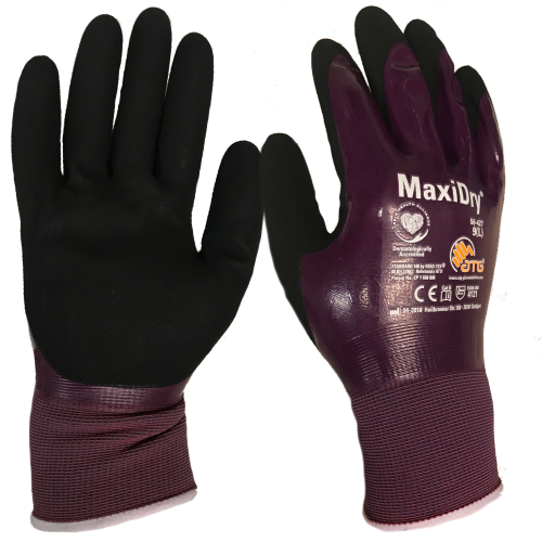 MaxiDry Oil ATG bezšuvju adīti cimdi ar nitrila pārklājumu, CE 10 izmērs