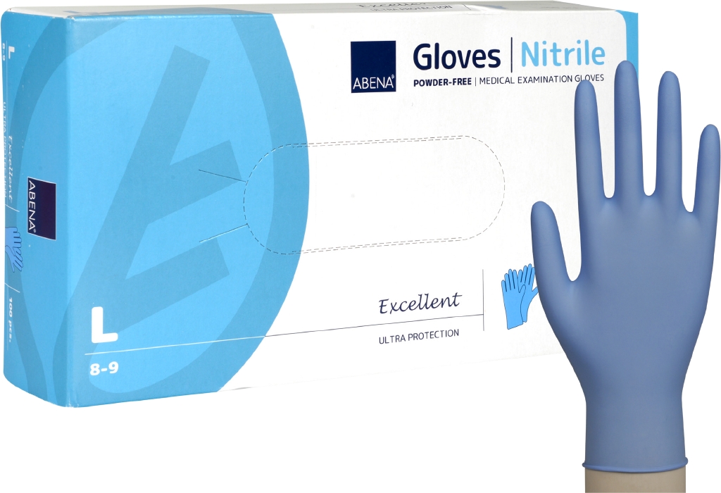 Abena Excellent nitrila cimdi L izm., 100 gab. zili, nepūderēti