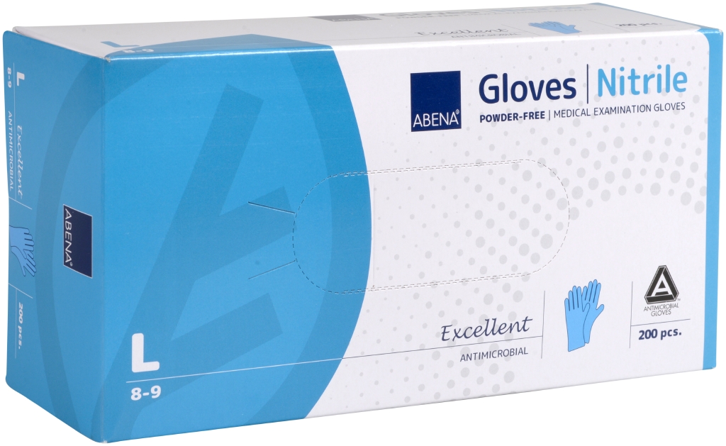 Abena nitrila cimdi L izmērs, Antimicrobial, 200 gab. zili, nepūderēti