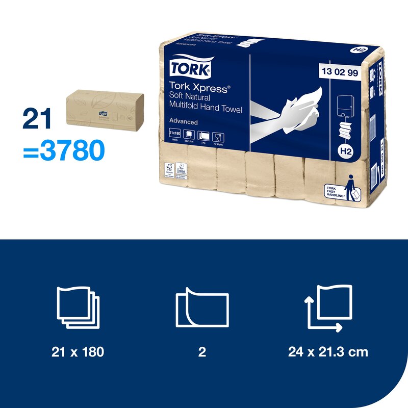 Nodrošiniet labu roku nosusināšanu un komfortu saviem viesiem ar mīkstiem «Advanced» kvalitātes «Tork Xpress® Multifold» papīra dvieļiem, kas ir patīkami rokām un rada augstas kvalitātes sajūtu.