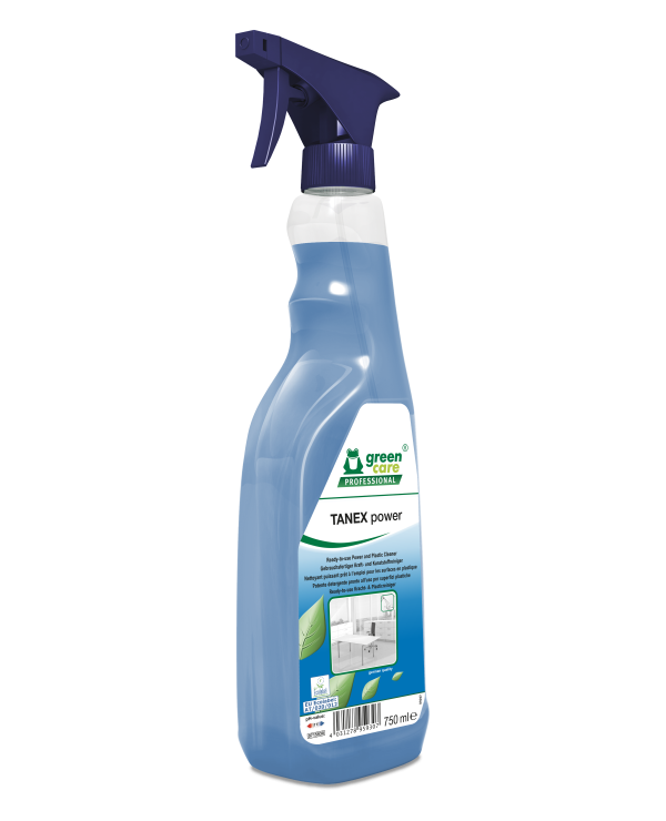 TANEX power ir gatavs lietošanai tīrīšanas un attaukošanas līdzeklis plastmasas virsmām