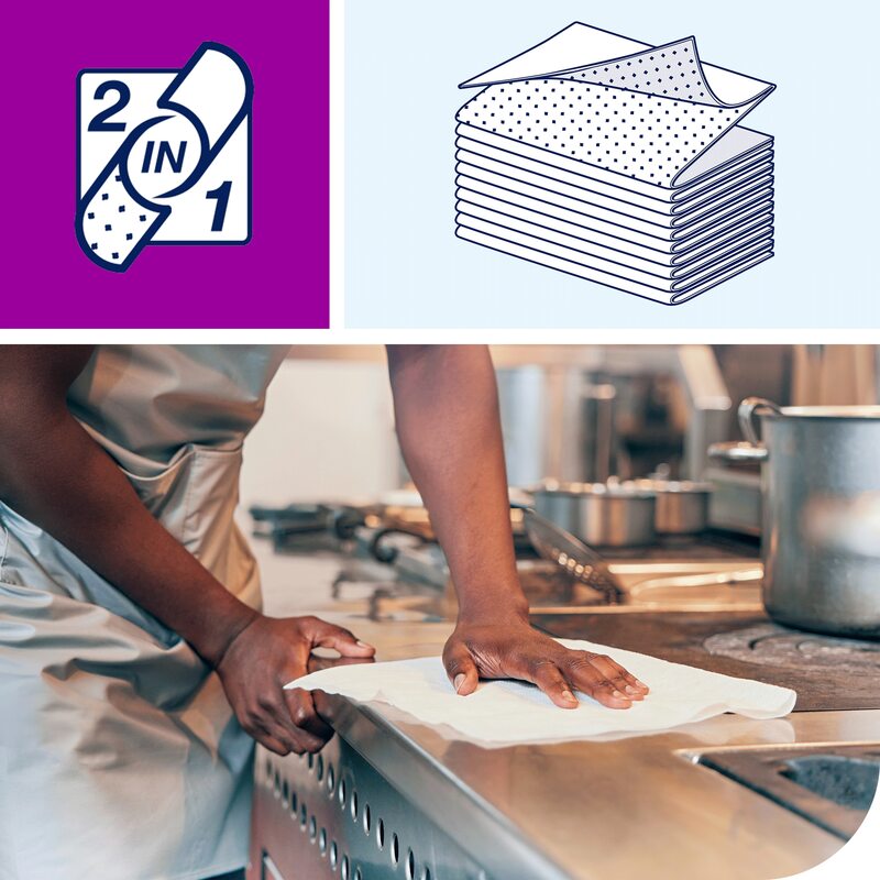 «Tork» beršanas un tīrīšanas drāna – 2 vienā ir efektīvai tīrīšanai paredzēta abrazīva un uzsūcoša tīrīšanas drāna.
