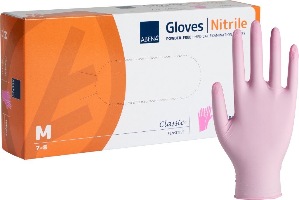 Abena нитриловые перчатки М размер 100 шт. розовые, без пудры