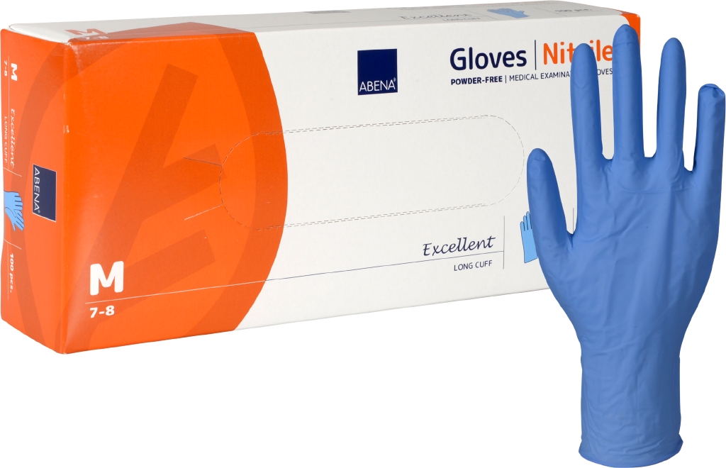 Abena нитриловые перчатки M размер, удлиненные (30 см), 100 шт. без пудры, синие