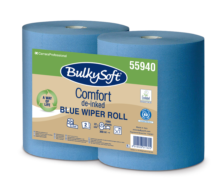 Bulkysoft Comfort индустриальная бумага 2 слоя, 22 см x 360м, синяя, 1000 листов